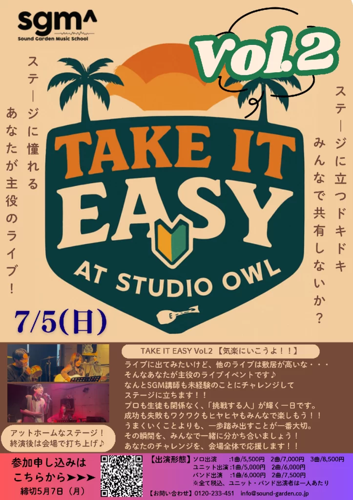 【ライブ告知】7/5開催!「TAKE IT EASY」〜音楽で心ほどけるひとときを〜